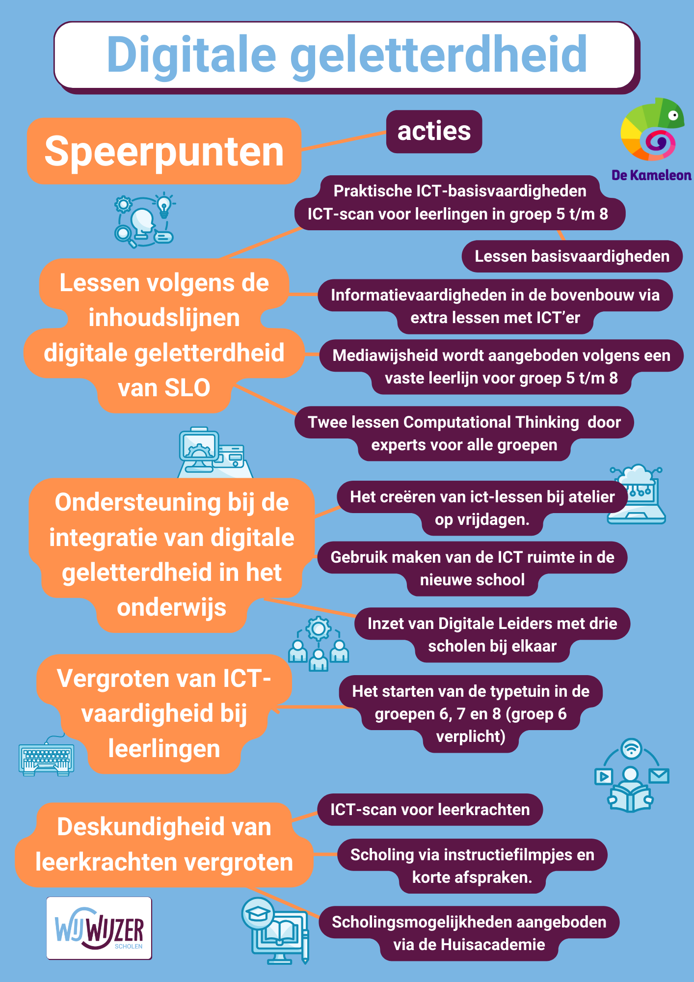ICT is niet meer weg te denken uit het onderwijs. Binnen onze school gebruiken wij de ICT als onderdeel van ons onderwijs. Op de informatieposter is te lezen wat onze speerpunten zijn en welke acties daar bij horen.